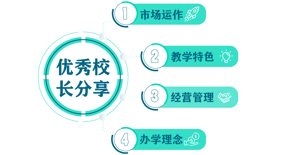 校長商學院的運營管理分享:全國優(yōu)秀合作校校長整個學校全方位運營經驗分享,市場運作、教學特色、管理經營等。拓展經營思路、運籌帷幄,讓學校長治久安。